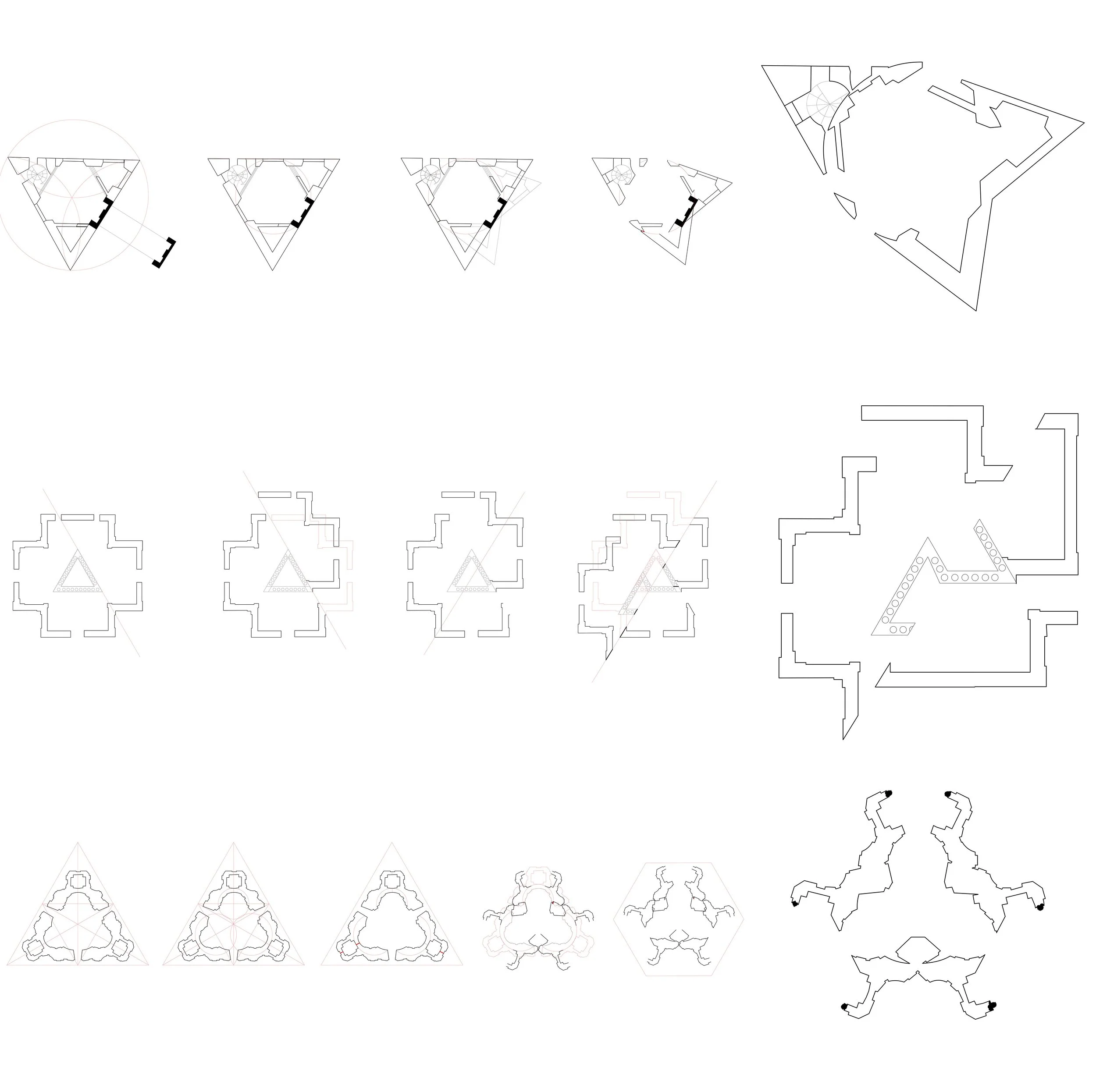 This project begins by transforming a series of historical precedents through techniques of collage and the insertion of charged ritual objects. These collages give rise to three distinct three-dimensional spaces dedicated to gardening, dining, and cooking. By thoughtfully situating these spaces on a site, they seamlessly montage into a unified community kitchen, offering a diverse journey of spatial, programmatic, and geometric encounters.